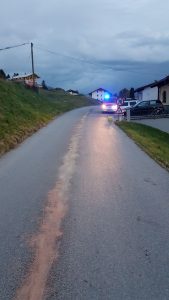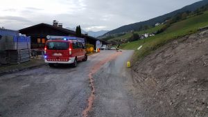 Die Feuerwehr Ellbögen wurde am 30.9.2017 mittels Pager wegen einer Ölspur auf der Landesstraße L38 alarmiert. Im Bereich zwischen der Baustelle bei der Abzweigung „Walz“ und dem „Furschterhof“ also auf einer Länge von ca. 1,0 km war eine Ölspur zu binden, die von einem Fahrzeug mit beschädigter Ölwanne verursacht wurde.