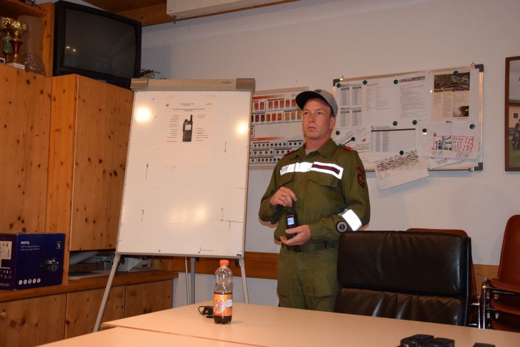 Diese wurde in einen theoretischen und praktischen Teil gegliedert. Im theoretischen Teil wurden Status Meldungen die zur Kommunikation mit der Leitstelle dienen sowie die Handhabung des Funkgerätes erklärt. Im anschließenden praktischen Teil wurde eine Suchaktion durchgeführt. Der Fokus wurde hier auf den Funkverkehr gerichtet.