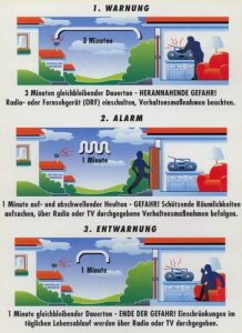 Zwischen 12.00 Uhr und 12.45 wurden die drei Zivilschutzsignale „Warnung“, „Alarmierung“ und „Entwarnung“ getestet und durchgeführt.