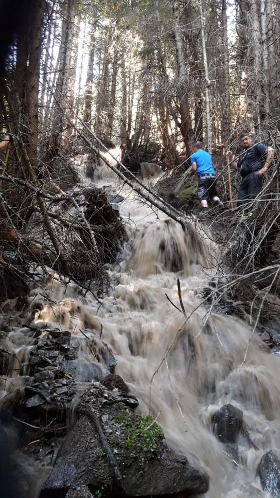 Eine Mannschaft von 5 Mitglieder der FFE befreiten den Bach von Geröll und Holz.