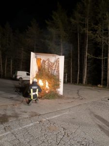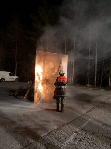 Übungsinhalt war die Simulation eines Wohnzimmerbrandes ausgelöst durch einen brennenden Christbaum, sowie die Simulation eines Fettbrandes.