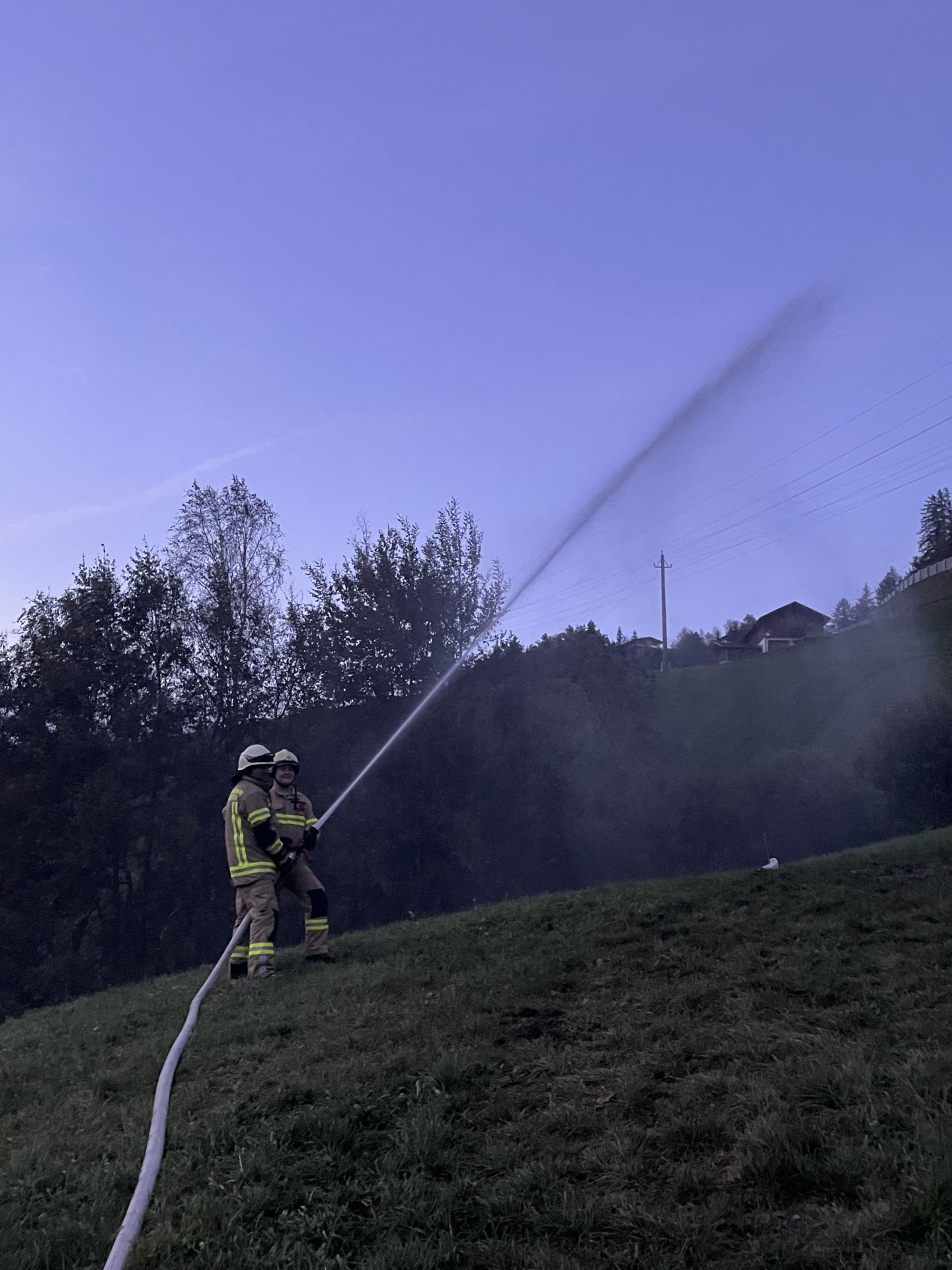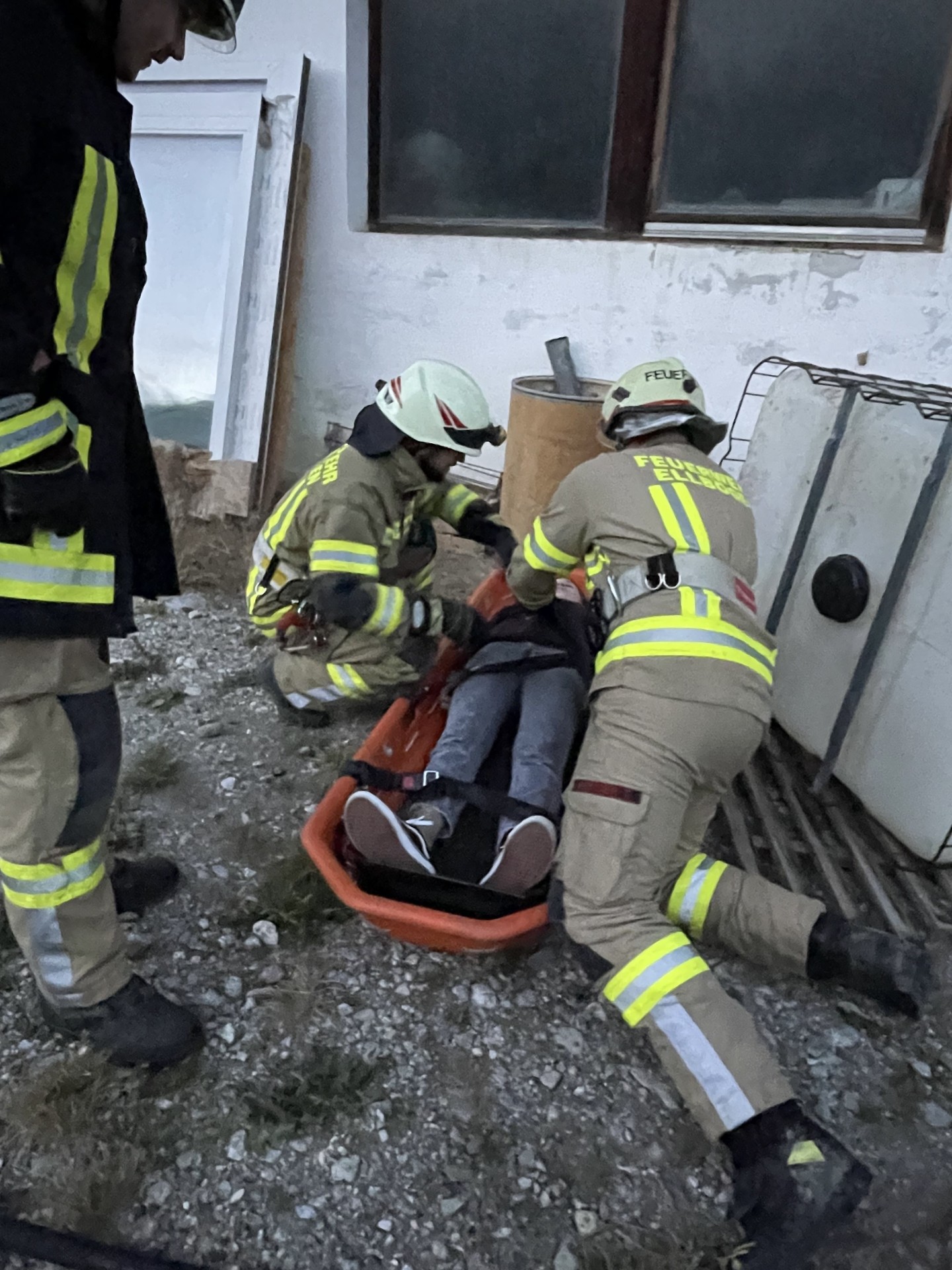 Am Samstag, den 21.10.2023 wurde die Abschlussübung des Zug A und Zug B der Feuerwehr Ellbögen durchgeführt. Übungsannahme war ein Brand in einem Wohnbereich eines alten Bauernhauses sowie einer unbekannten Anzahl an vermissten Personen. Sofort nach dem Eintreffen wurde eine Speiseleitung sowie mehrere Angriffsleitungen aufgebaut. Somit konnte der ATS-Trupp rasch mit der Brandbekämpfung und der Personensuche im Innenbereich starten. Währenddessen konnte die restliche Mannschaft zwei Personen von einem Balkon mithilfe einer Leiter retten, eine eingeklemmte Person unter einem 1000l Tank befreien und weitere Suchaktionen und Menschenbergungen durchführen. Als weitere Herausforderung galt es eine heißgewordene Gasflasche aus dem Gebäude zu bringen und diese in sicherer Entfernung zu kühlen. Auch dies konnte gut gemeistert werden.