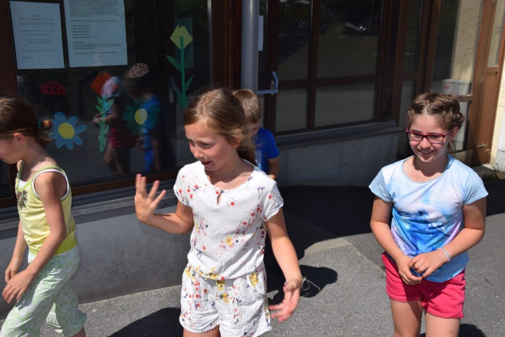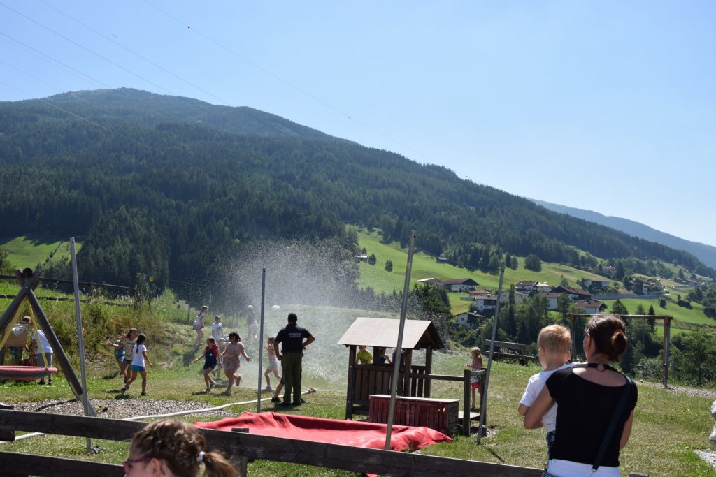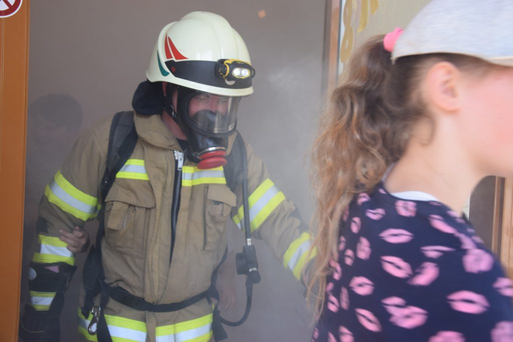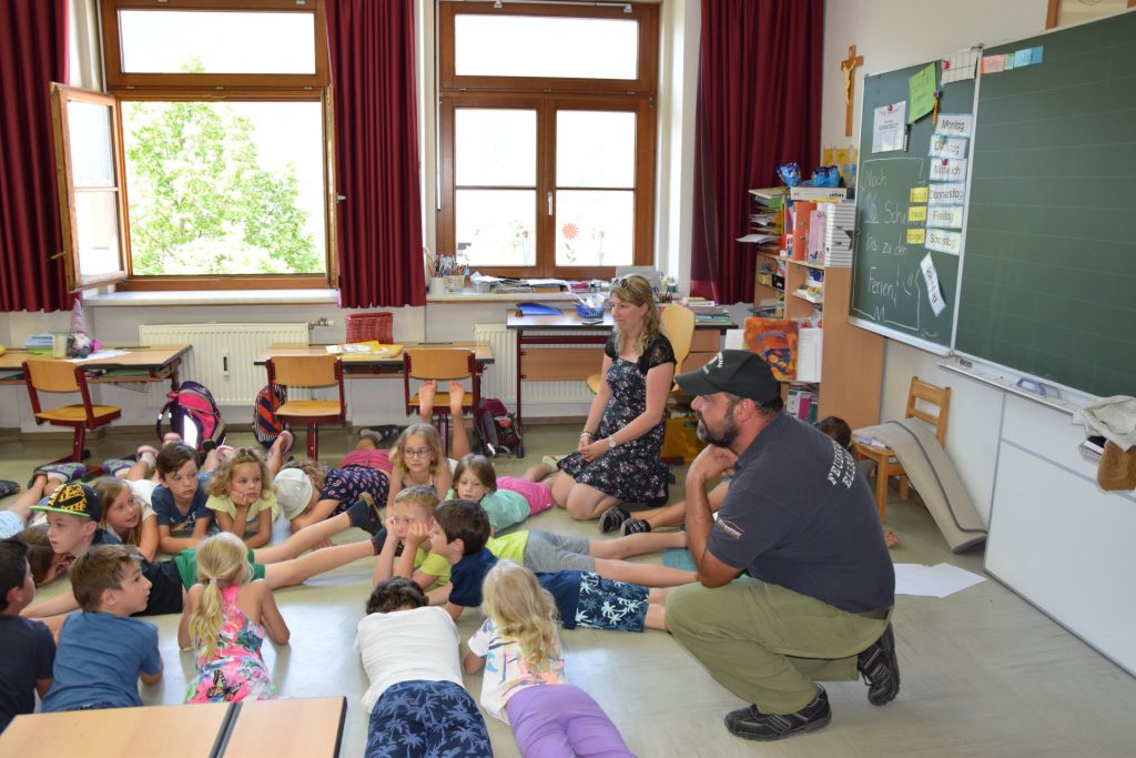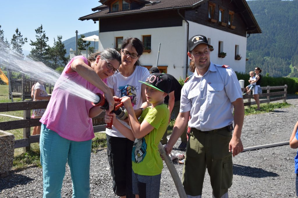 Reinhard Ribis erklärte den Kindern zuerst die wichtigsten Dinge über die Feuerwehr und das richtige Verhalten in einem Ernstfall. Dazu wurde anschließend eine kleine Übung mit den Schülern durchgeführt. Die Kinder konnten die Fahrzeuge bestaunen und natürlich wurden erste „Löschversuche“ mit dem Strahlrohr und sogar mit dem großen Wasserwerfer ausführen.