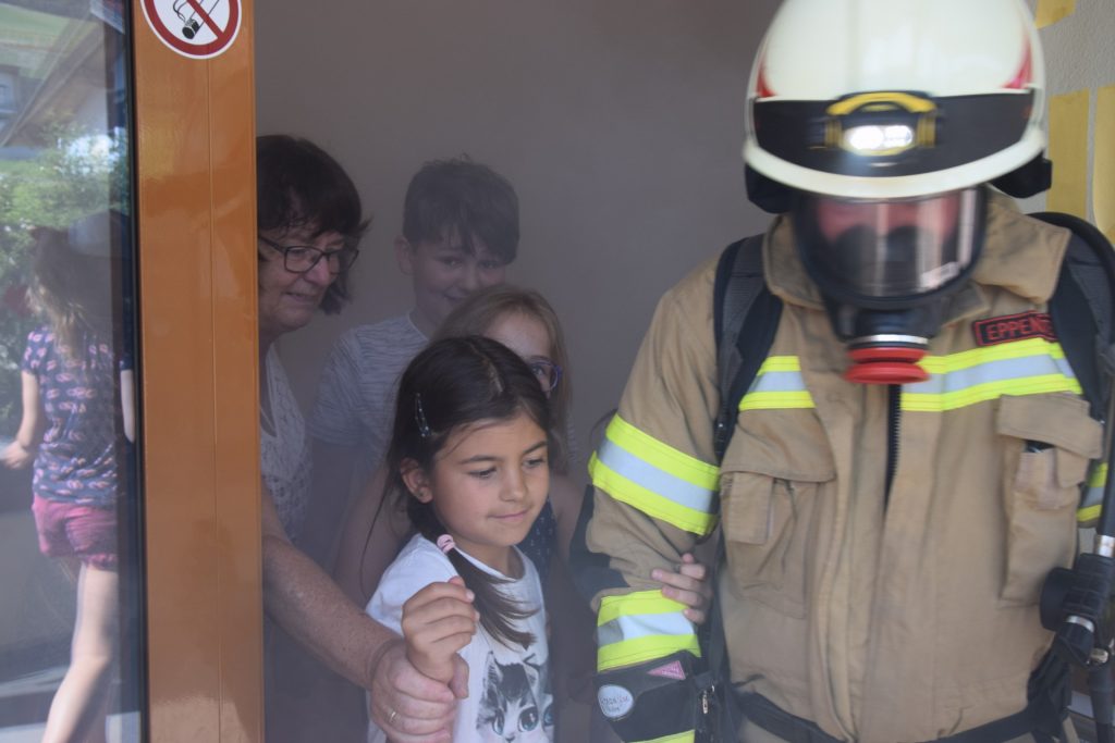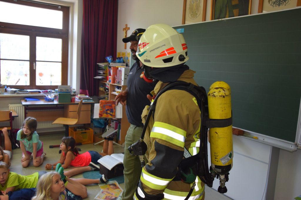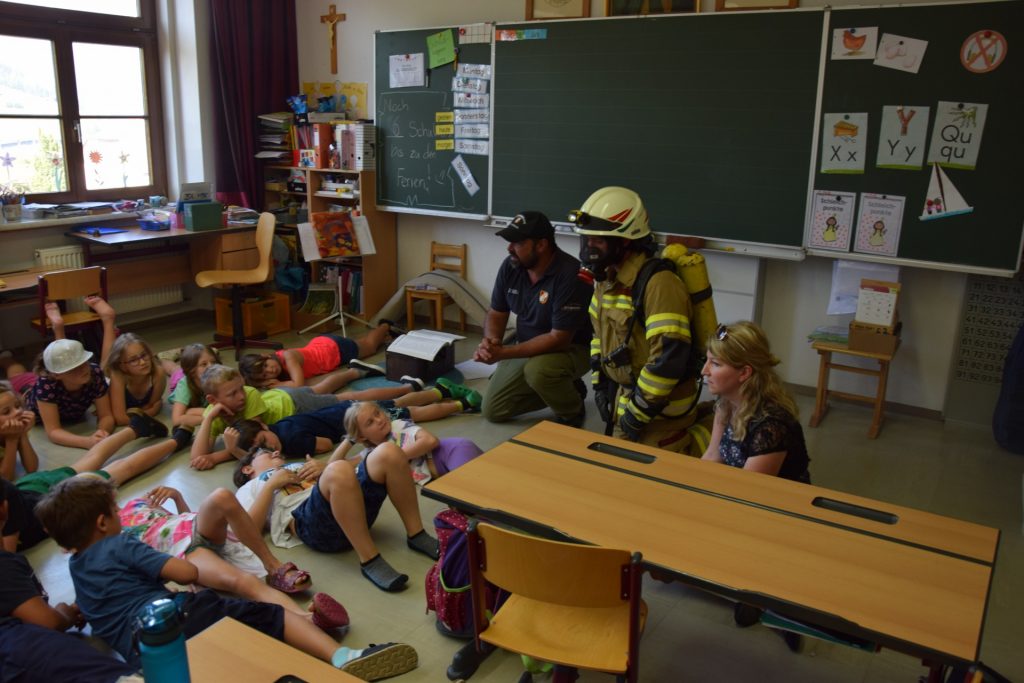 Pünktlich vor Schulende besuchte die Feuerwehr Ellbögen ebenfalls die Volksschule Ellbögen.